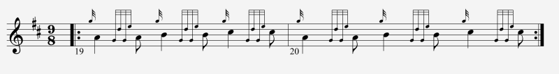 - the figure of notes "black + eighth note preceded by a taorluath" is one of the hallmarks of this air = be careful not to rush the taorluath = play a quarter note of sufficient length before each ornament,