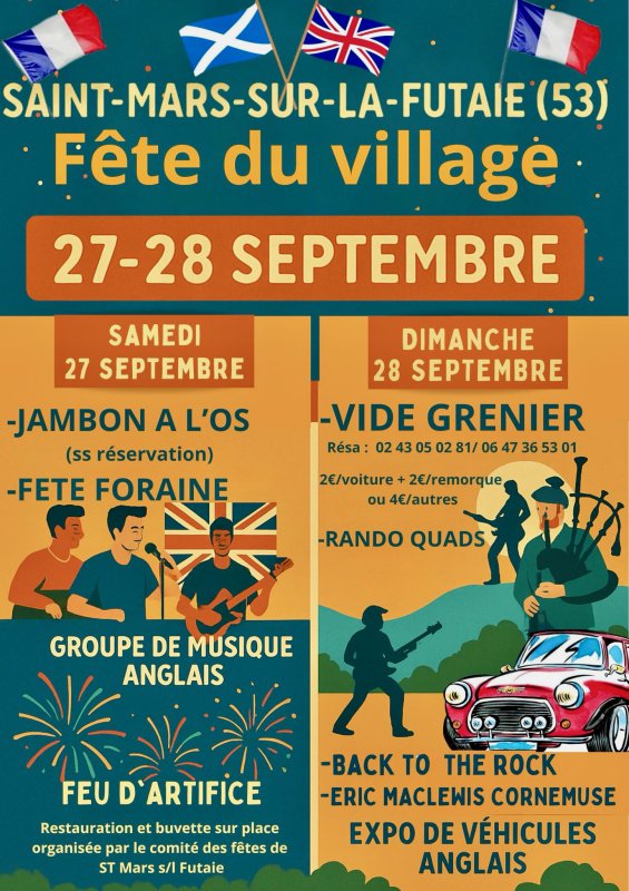 Château-Chinon (FR-58) - The Last Man Standing (Trail 2025) / Savigné sur Lathan (FR-37) - St. Patrick 2024 / Ste Marguerite sur Duclair (FR-76) - 2023 / Gamaches (FR-80) et Moussy le Neuf (FR-77) - 2022 Christmas fairs / Aizenay (FR-85) - September 2022 / Les Sables d'Olonne (FR-85) - Twinning committee Les Sables d'Olonne & Worthing (GB) - August 2022 / Mer (FR-41) - September 2021 / Wimereux (FR-62) - July 2021 / Bar le Duc (FR-55) - Oct. 2020 / Amboise (FR-37) - Nuit des Roys (sporting event) 2006-2010-2011-2013-2015-2017-2018-2019 / Vannes (FR-56) - Fête de Bretagne (2019) / Sceaux (FR-92) - Fête de l'Europe (2019) / Treigny (FR-89) - Fair (2019) / Couhé (FR-86) - Remembrance Day (2018) / Beaulieu sur Dordogne (FR-19) - (2018) / Saignes (FR-15) - Patronal Feast (2018) / La Chapelle de Guinchay (FR-71) - Bastille Day (2018) / Chaource (FR-10) - Fair 1st May (2018) / Châbons (FR-38) - Baroque Party (2017) / La Côte Saint André (FR-38) - Berlioz Festival (2017) / Saint Valery en Caux (FR-76) - Sea Festival (2017) / Noirmoutier en l'Ile (FR-85) - Port Festival (2017) / Pougny (FR-58) - market (2016) / Vouvant (FR-85) - France-Great Britain Festival (2016) / Saâcy sur Marne (FR-77) - carnival (2016) / Tigy (FR-45) - Fair (2016) / Pacy sur Eure (FR-27) - Christmas market (2015) / St Amand en Puisaye (FR-58) - market (2015)